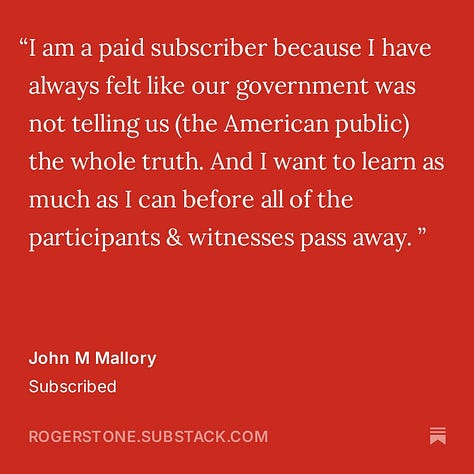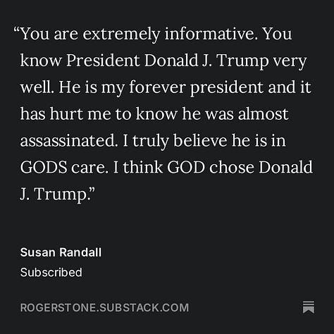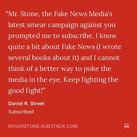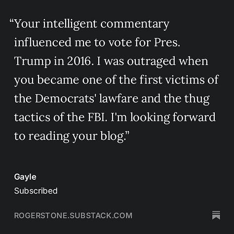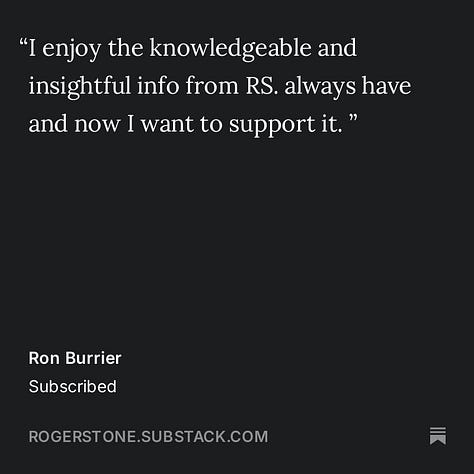 But if you need assistance with your subscription, you can contact me and my team at rogerstone@substack.com.