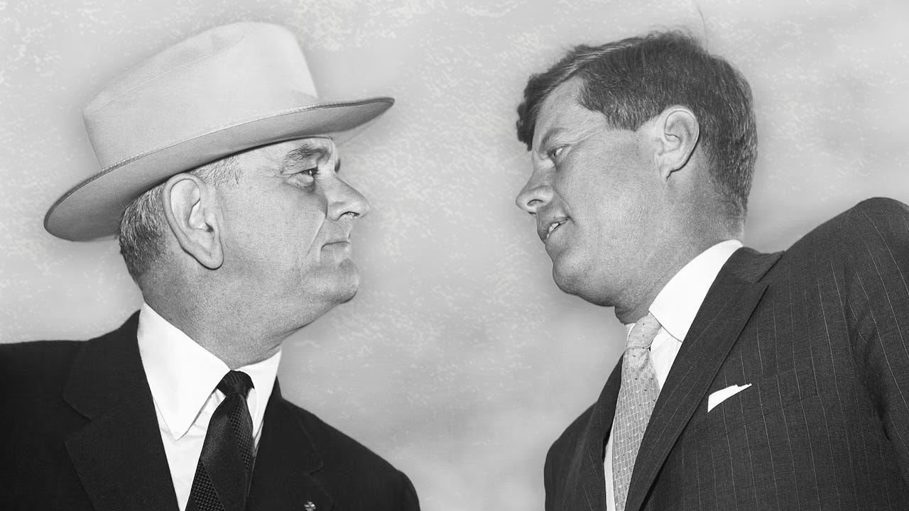 Lyndon Johnson had all three in monstrous abundance. By late 1963 Johnson faced scandal, possible political exile, and the very real possibility that John Kennedy would dump him from the 1964 ticket. Robert Kennedy was circling corruption in Johnson’s orbit like a hawk above a field mouse. Then Dallas happened.